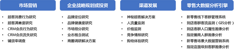 當(dāng)傳統(tǒng)“人”“貨”“場”的消費(fèi)場景被迅速重構(gòu),消費(fèi)者體驗(yàn)和數(shù)據(jù)驅(qū)動(dòng)的泛零售狀態(tài)成為焦點(diǎn),企業(yè)如何通過新零售為品牌賦能成為各行業(yè)關(guān)注重點(diǎn)。華夏經(jīng)緯零售研究包括店鋪形象研究、動(dòng)線研究、布局研究、陳列研究、店內(nèi)銷售服務(wù)研究、消費(fèi)體驗(yàn)研究、鋪貨率調(diào)查等。